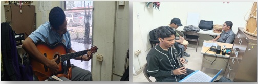 En el Taller de música los jóvenes aprenden a tocar un instrumento.